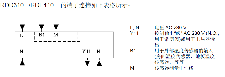 · 温控器通过内置/外部温度传感器维持房间温度。当接入外部传感器时,控制器自动探测到它的存在。这种情况下,内置传感器失效。