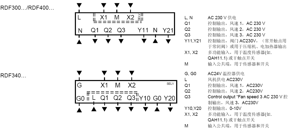 · RDF300/RDF400 工作电压AC230V, 开/关或三位控制输出