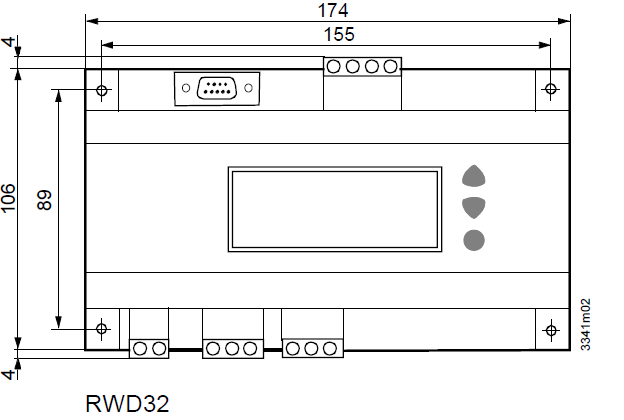 C 用标准元件从正面安装。 如: 1条DIN轨道,对RWD82为150毫米长,对RWD32为195毫米长,2个50毫米的六角位置标志符,若干垫圈和螺丝。