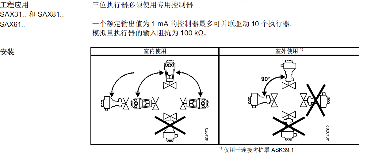 注意:当本执行器与其他厂家的阀门连接使用时,用户必须确保其功能正常,西门子不承担任何责任