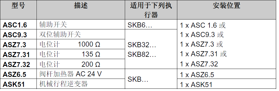 · 可选功能:辅助开关、电位计、阀杆加热器和机械行程逆变器